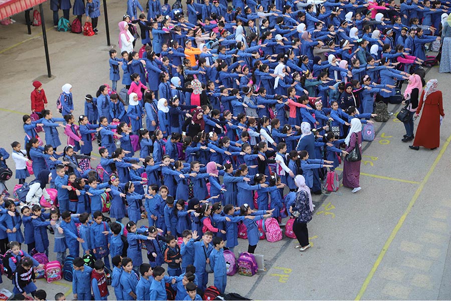 طوابير الطلبة صباح اليوم كانت ايذانا ببدء العملية التعليمية والتدريسية بعد انقطاع استمر لأربعة أسابيع، استجابة لإعلان نقابة المعلمين البدء بإضراب المعلمين عن التدريس من صباح يوم الأحد الثامن من أيلول الماضي وحتى مساء أمس السبت.