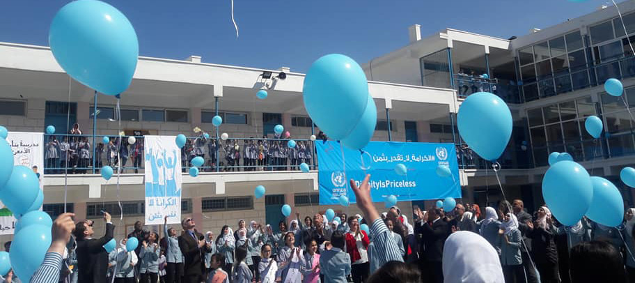 طلاب 700 مدرسة من مدارس الأونروا في الشرق الأوسط، يطيرون طائرات ورقية مطالبين بأن تظل جميع المدارس التي تديرها الوكالة مفتوحة، رغم الأزمة المالية التي تواجهها .