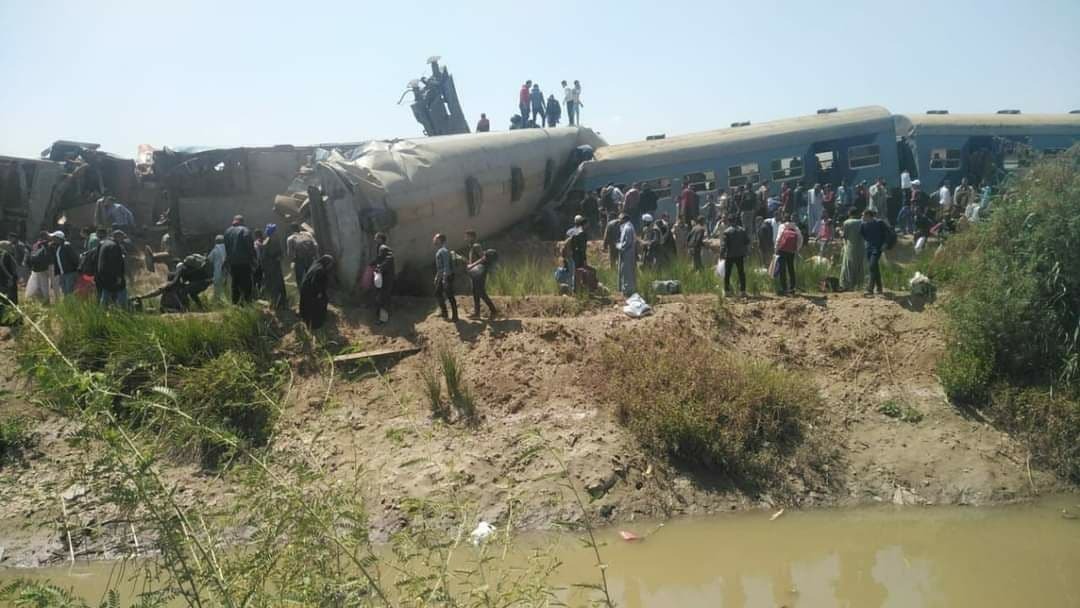 وقتل 32 مصريًا على الأقل وأصيب 66 آخرون في تصادم قطارين في مدينة طهطا بمحافظة سوهاج في صعيد مصر، بعد توقف أحدهما إثر "فتح مجهولين مكابح الطوارئ".