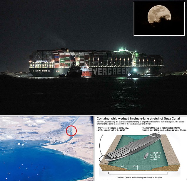 وعلقت سفينة حاويات ضخمة في ممر قناة السويس يوم الثلاثاء الماضي، الأمر الذي أدى إلى تكدس مئات سفن الشحن أمام القناة، التي تعد شريانا تجاريا مهما.