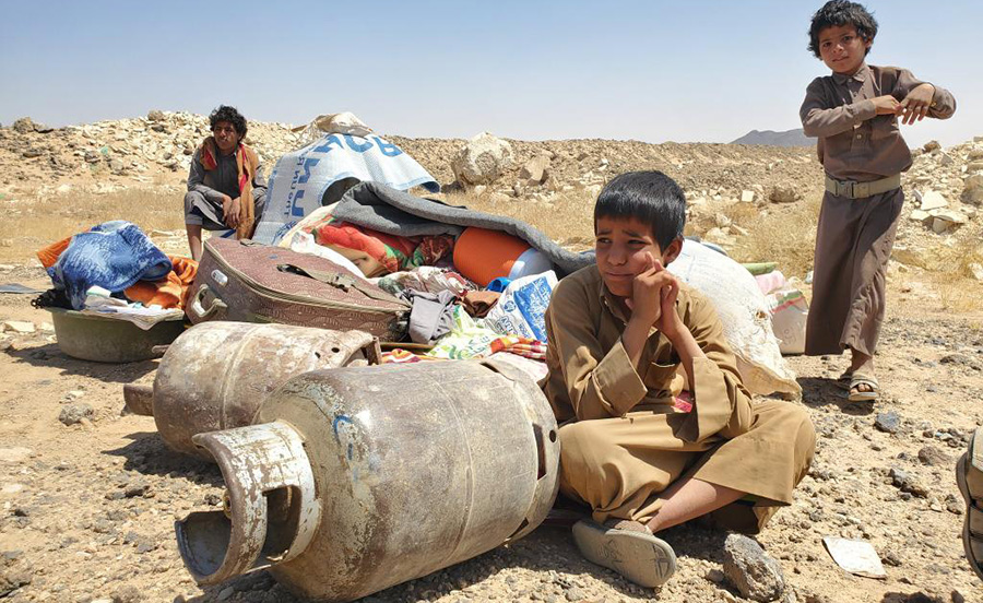 نازحون داخليا بعد هروبهم من مخيمهم في محافظة مأرب وسط اليمن. قال مصدر أمني محلي، إن سبعة أشخاص على الأقل أصيبوا يوم الأحد، بعد قصف مدفعي شنته ميليشيات الحوثي ضرب مخيما للنازحين داخليا في محافظة مأرب وسط اليمن.