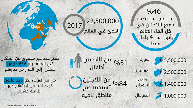 تفاصيل جديدة يكشفها البنك الدولي لخريطة اللاجئين في العالم .