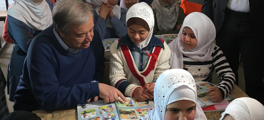 الأمين العام للأمم المتحدة أنطونيو غوتيريش في مخيم الزعتري للاجئين السوريين في الأردن.
