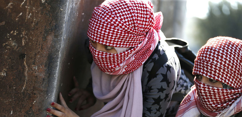 شابات فلسطينيات أثناء الاشتباكات مع القوات الإسرائيلية في بيرزيت بالقرب من رام الله، الضفة الغربية، 12 مارس/ آذار 2018