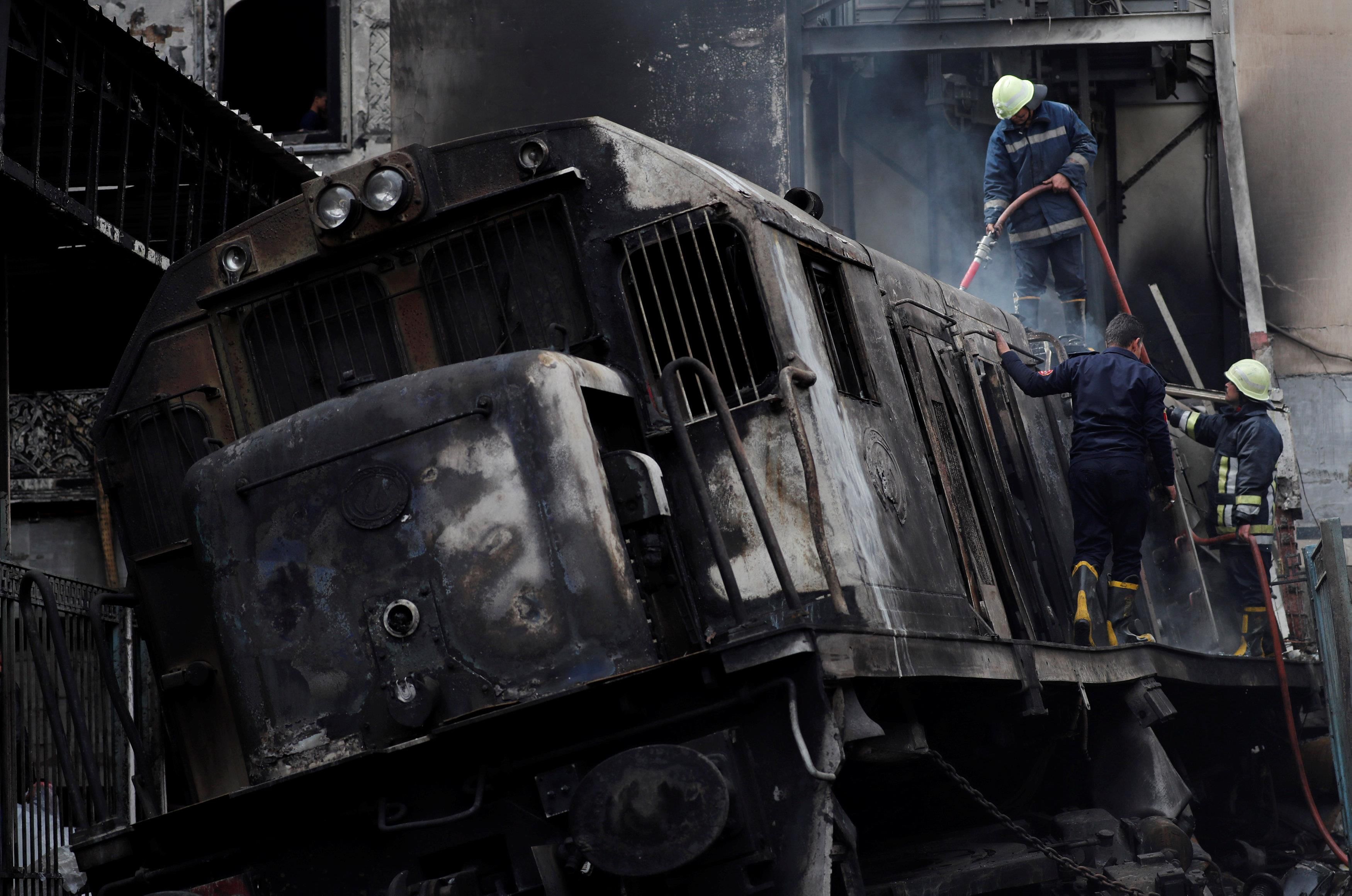 وقال المستشار نادر سعد، المتحدث باسم الحكومة في مصر، لبي بي سي إن حادث القطار وقع بسبب انفجار خزان الوقود بأحد القطارات نتيجة اصطدامه بأحد أرصفة المحطة.